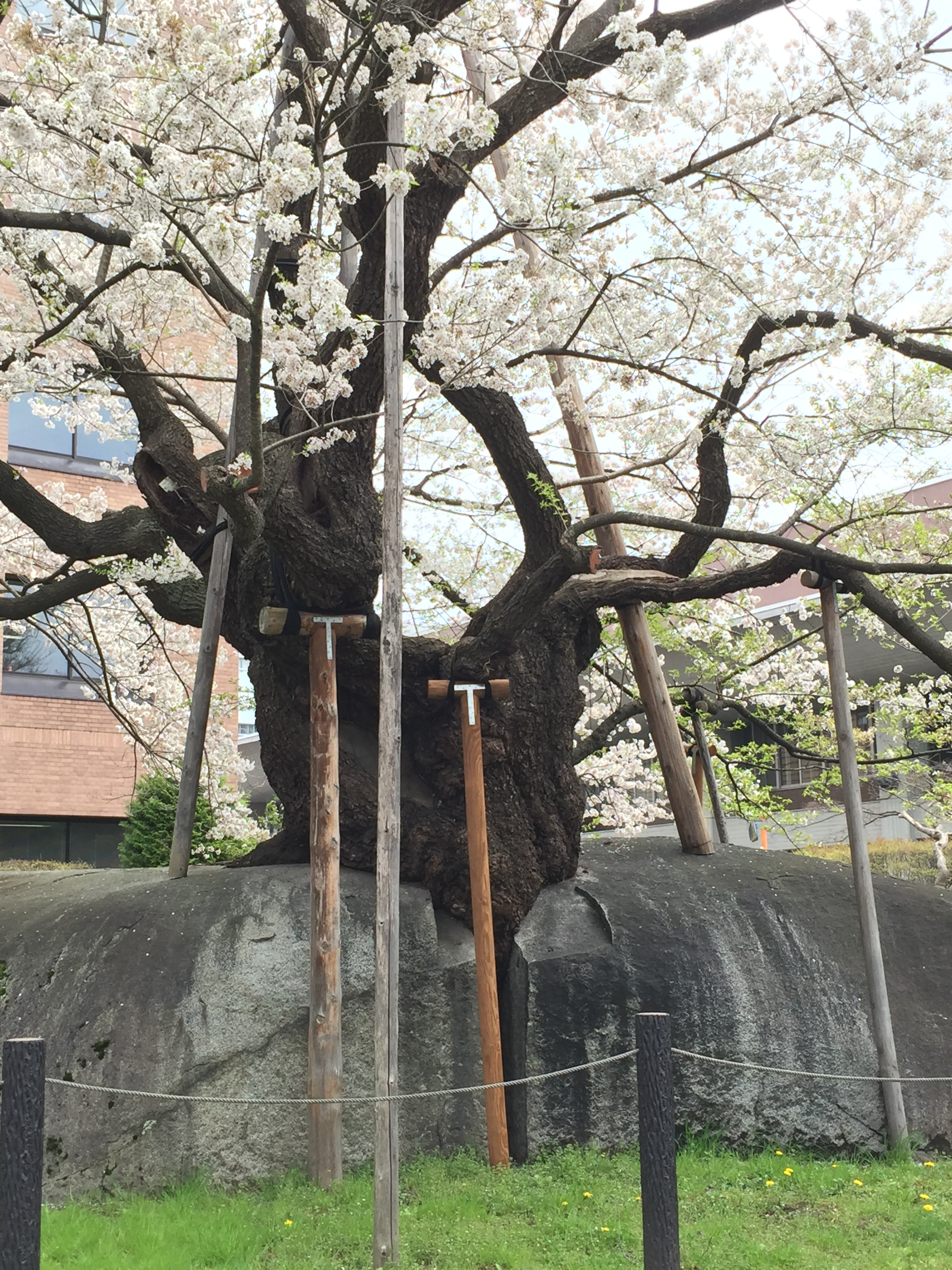 盛岡地方裁判所前に咲く樹齢360年の石割桜 文字通り花崗岩を破って今年も満開でした その生命力に感嘆