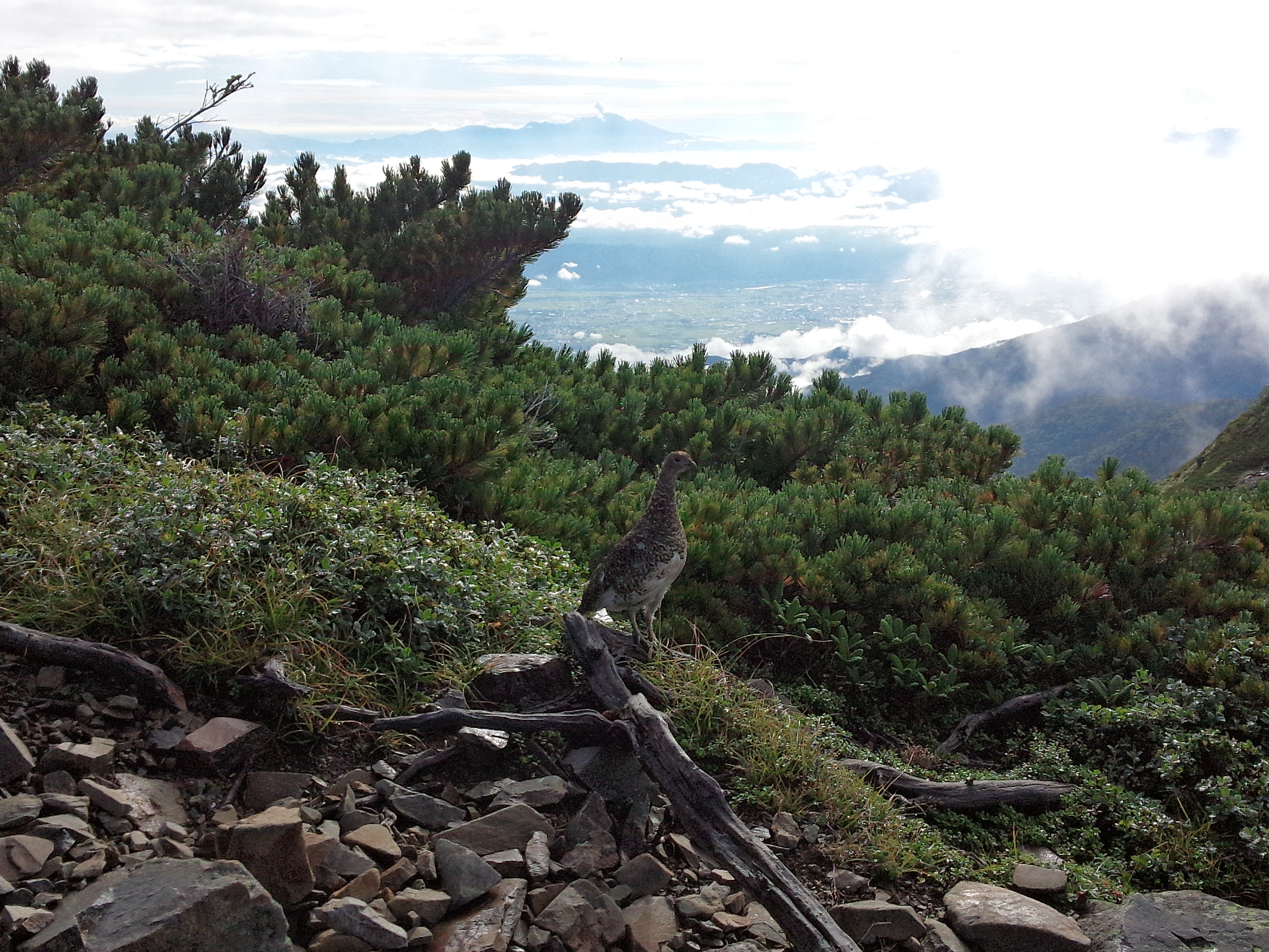 蝶ケ岳で本物の雷鳥を発見。人懐っこく、登山者が横を歩いても逃げません。