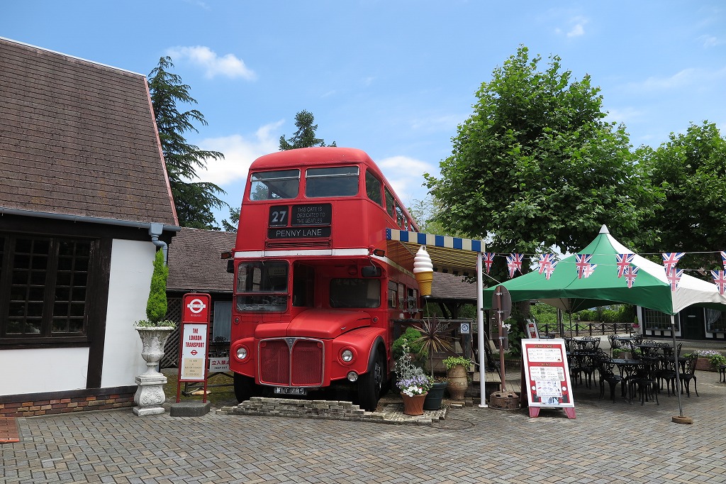 ロンドンの赤い2階建てバスがソフトクリーム屋さんになっていました。(修善寺虹の郷にて)