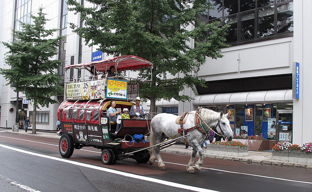 札幌市街で観光幌馬車に出会いました。北海道ならではの風景に思わずカメラを向けました。